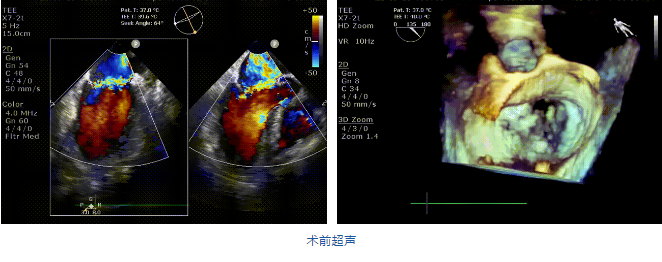 接受治療的是一例二尖瓣重度反流的患者,主訴“突發(fā)間歇性胸悶,氣急6天”。術(shù)前超聲提示:1.二尖瓣脫垂伴重度關(guān)閉不全(瞬時(shí)量30ml);2.左心、右房增大(左房容積110ml,左室容積129ml,右房容積55ml);3.左室收縮功能正常?;颊咴诔浞謽?biāo)準(zhǔn)化藥物治療后(GDMT)仍然癥狀明顯,韓林教授及其團(tuán)隊(duì)唐楊烽教授,以及心超科的周廣為醫(yī)生決定使用我國創(chuàng)新器械JensClip為患者進(jìn)行二尖瓣緣對(duì)緣修復(fù)手術(shù)。