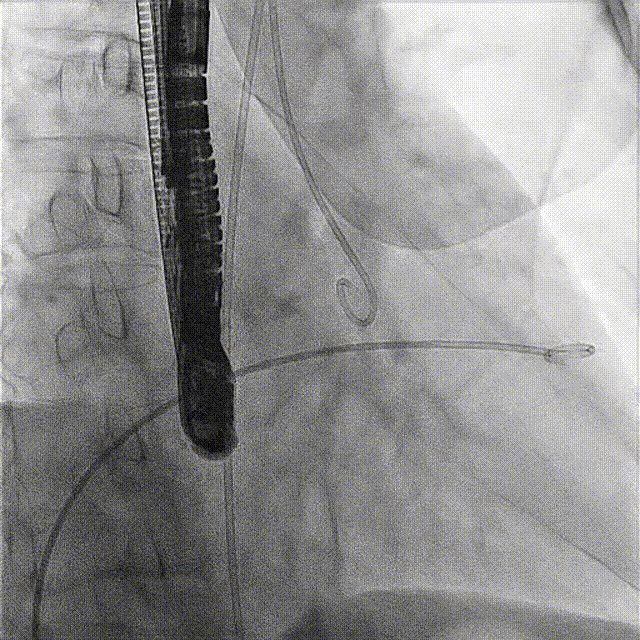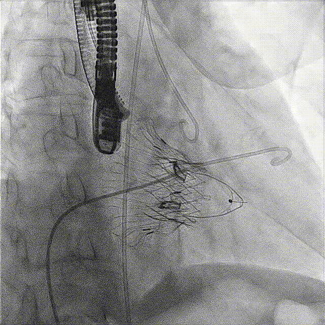 接受手術(shù)的為一名80歲男性,因“心悸2年,氣喘伴下肢水腫半年”入院。超聲心動(dòng)提示“極重度三尖瓣反流,右房及右室明顯擴(kuò)大,右心收縮功能輕度減低,左心收縮功能正常,肺動(dòng)脈壓力正常”?;颊咄瑫r(shí)合并有“持續(xù)性房顫”及“慢性心力衰竭”,病史持續(xù)2年,規(guī)律口服抗凝及強(qiáng)心、利尿治療治療效果不佳,癥狀持續(xù)。經(jīng)廈心心臟團(tuán)隊(duì)評(píng)估后,認(rèn)為患者三尖瓣極重度反流并伴有心衰表現(xiàn),長(zhǎng)期內(nèi)科藥物治療效果不佳,且患者高齡、外科手術(shù)風(fēng)險(xiǎn)高,因此決定采用微創(chuàng)經(jīng)頸靜脈LuX-Valve Plus三尖瓣置換系統(tǒng)為患者治療。
