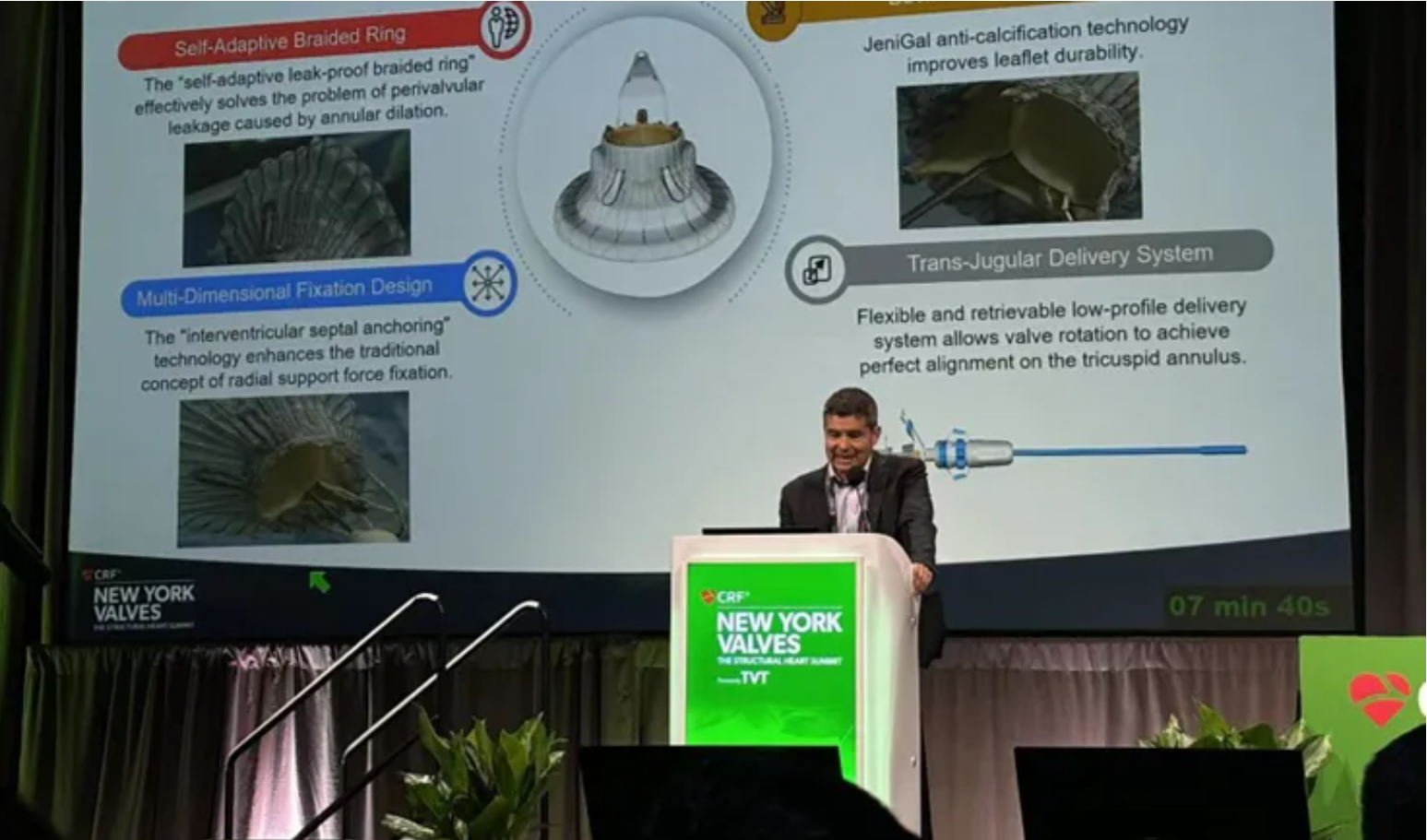 來自美國(guó)紐約蒙特法沃醫(yī)療中心(Montefiore Medical Center, New York, U.S.)的Azeem Latib教授在分享TTVR研究時(shí)高度贊揚(yáng)LuX-Valve Plus。他在分享中講到,TTVR器械能完全消除三尖瓣反流,并且顯著改善癥狀和生活質(zhì)量,能夠成為第一線的治療方式。其中,LuX-Valve Plus的30天數(shù)據(jù)顯示94.1%的患者反流等級(jí)降低至2+及以下,88.3%的患者NYHA心功能等級(jí)恢復(fù)至I/II級(jí)。與此同時(shí),一些TTVR器械的臨床試驗(yàn)也出現(xiàn)了較高的嚴(yán)重出血率和較高的起搏器植入率,然而LuX-Valve Plus卻依然展現(xiàn)了較低的起搏器植入率。在最后,Latib教授總結(jié)道,正確的患者及器械篩選,以及合適的學(xué)習(xí)曲線可以有效降低并發(fā)癥。