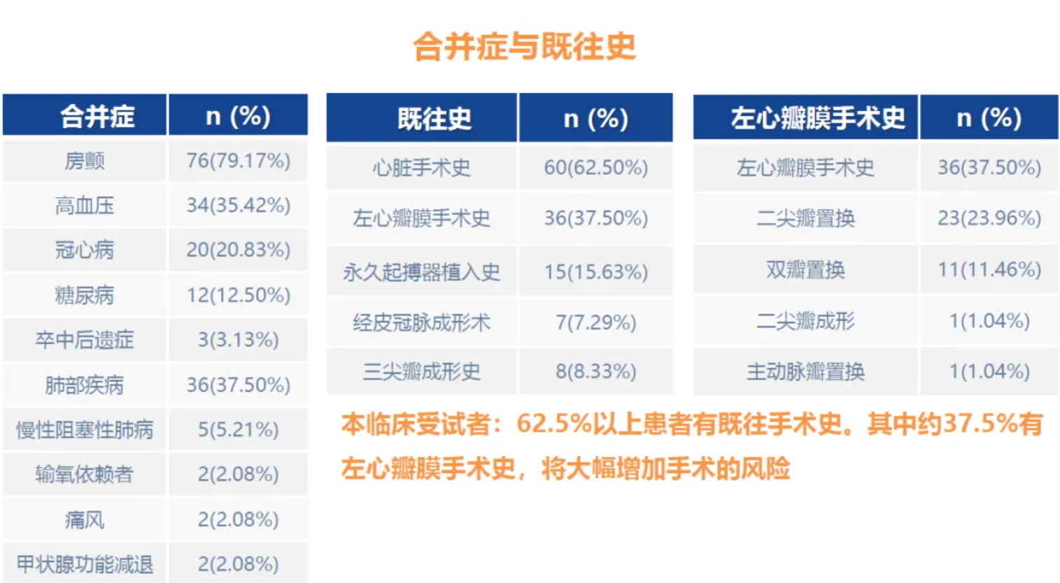 TRAVEL II 研究是一項(xiàng)前瞻性、多中心、單臂臨床試驗(yàn),主要用于評(píng)估LuX-Valve Plus于重度三尖瓣反流患者中應(yīng)用的長(zhǎng)期安全性和有效性。TRAVELL II 臨床試驗(yàn)共納入了中國(guó)15家臨床中心的96例患者?;颊咂骄挲g為71.35歲,平均STS評(píng)分為9.09%,37.50%的患者在研究前接受了左心瓣膜手術(shù),15.63%的患者有過起搏器植入史,同時(shí)多合并其他基礎(chǔ)病,基線情況較差,存在較高的外科手術(shù)風(fēng)險(xiǎn)和接受其他方式介入治療的難度。