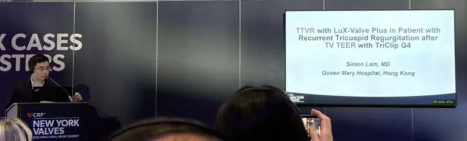 來自中國(guó)香港瑪麗醫(yī)院(Queen Mary Hospital, Hong Kong, China)的Simon Lam教授在2024年紐約瓣膜會(huì)上分享了一例復(fù)雜案例,一名高齡男性患者在2年前行二尖瓣和三尖瓣TEER術(shù)式后繼發(fā)三尖瓣反流,遂再次行二尖瓣TEER術(shù)式和用LuX-Valve Plus行三尖瓣TTVR術(shù)式。