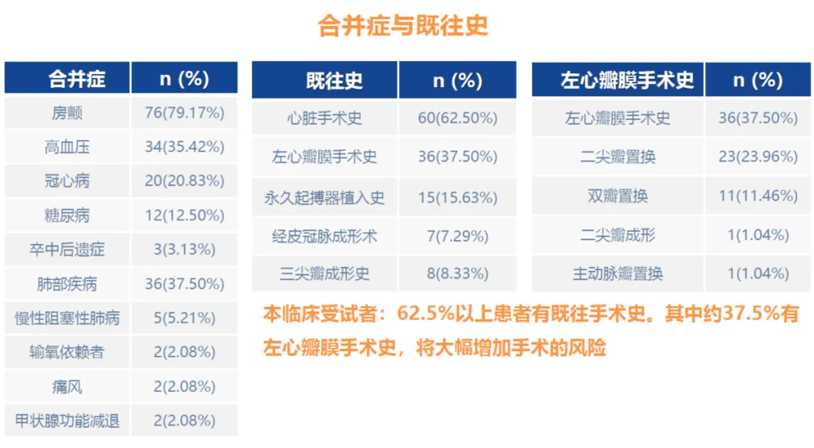TRAVEL II 研究是一項(xiàng)前瞻性、多中心、單臂臨床試驗(yàn),主要用于評(píng)估LuX-Valve Plus于重度三尖瓣反流患者中應(yīng)用的長(zhǎng)期安全性和有效性。TRAVEL II 臨床試驗(yàn)共納入了中國(guó)15家臨床中心的96例患者?;颊咂骄挲g為71.35歲,平均STS評(píng)分為9.09%,37.50%的患者在研究前接受了左心瓣膜手術(shù),15.63%的患者有過(guò)起搏器植入史,同時(shí)多合并其他基礎(chǔ)病,基線情況較差,存在較高的外科手術(shù)風(fēng)險(xiǎn)和接受其他方式介入治療的難度。