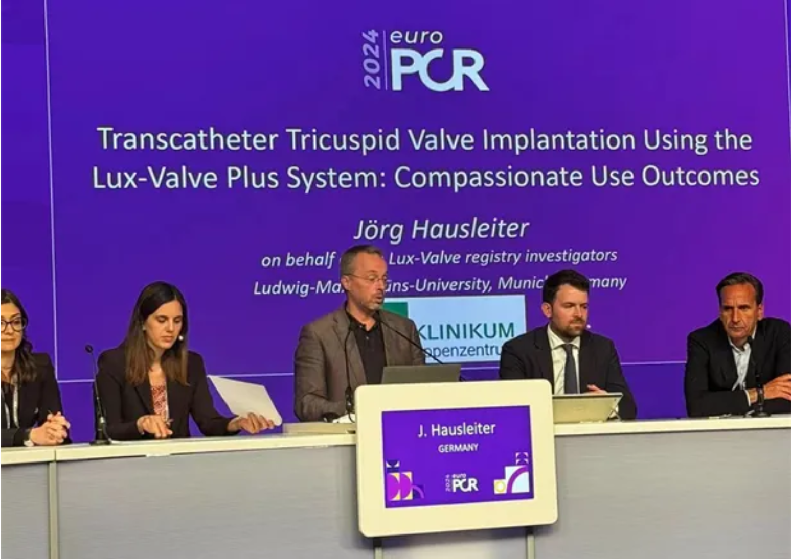 LuX-Valve Plus在全球多中心開(kāi)展的救治臨床數(shù)據(jù)由來(lái)自德國(guó)慕尼黑路德維希·馬克西米利安大學(xué)醫(yī)院(Klinikum der Ludwig-Maximilians-Universität München, Munich, Germany)的Jörg Hausleiter教授于2024歐洲介入心臟病學(xué)大會(huì)(EuroPCR 2024)上發(fā)布,并隨后在紐約瓣膜會(huì)上多次獲得贊揚(yáng)。研究結(jié)果表示經(jīng)頸靜脈入路的LuX-Valve Plus三尖瓣介入置換系統(tǒng)是安全的,并且能夠有效降低反流等級(jí)。