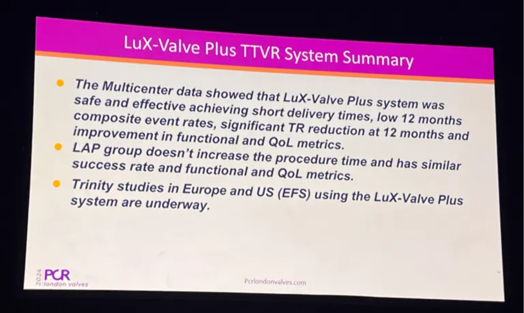 ● LuX-Valve Plus 在大瓣環(huán)患者應(yīng)用中的一年期隨訪(fǎng)數(shù)據(jù)在 PCR London Valves 2024 分享