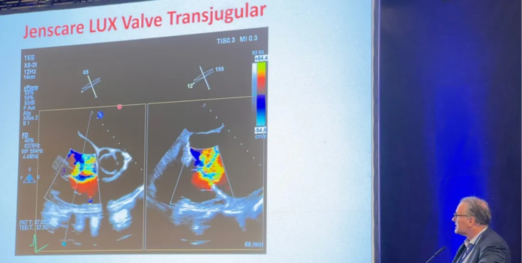 此外,這位教授還分享了與一位法國(guó)教授攜手完成的2例真實(shí)病例,并對(duì)其進(jìn)行了講解。術(shù)式團(tuán)隊(duì)在超聲與DSA等多維影像手段的支持下,精準(zhǔn)嫻熟地完成LuX-Valve Plus瓣膜的植入,器械操作時(shí)間僅為30分鐘,瓣膜植入后術(shù)中即刻三尖瓣反流消失,多普勒超聲下無(wú)明顯瓣周漏或中心性反流,肺動(dòng)脈壓正常,人工瓣膜運(yùn)動(dòng)正常,術(shù)后兩位患者狀態(tài)穩(wěn)定,安返病房。